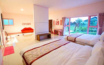 我們有『幸福旅宿館』和『小瓢蟲主題蜜月房』,美麗的窗景,舒適的大床,營造出浪漫的空間,採光良好、大空間的房間設計,適合情侶、家人及朋友旅遊時的最佳居住選擇。
